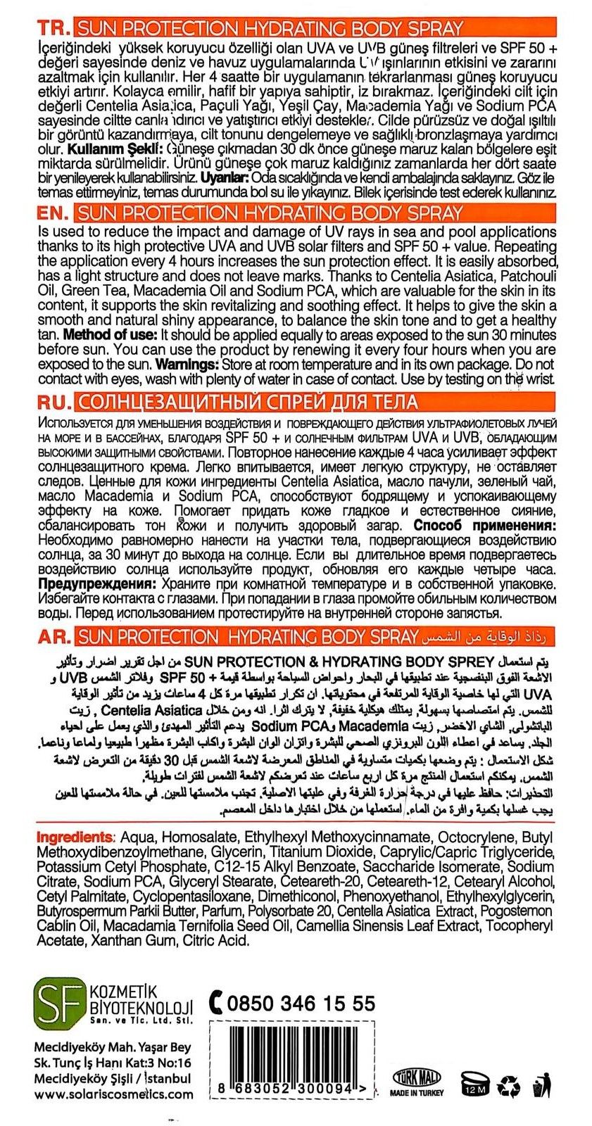SOLARIS Güneş Koruyucu Nemlendirici Vücut Spreyi SPF 50+ (200 Ml)