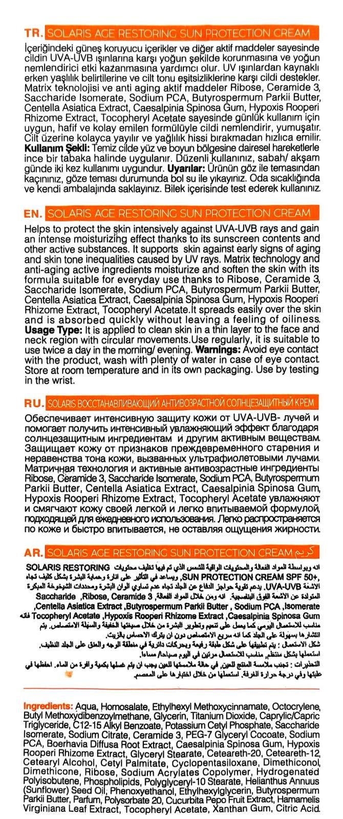 Solaris Age Restoring Sun Protection Cream İçerisinde Neler Bulunur
