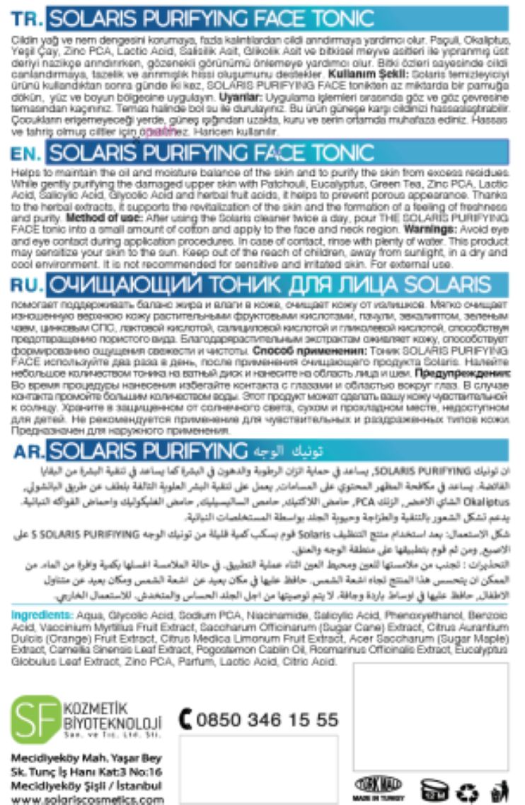 Solaris Purifiying Face Tonic Kozmetik Etkileri Nelerdir