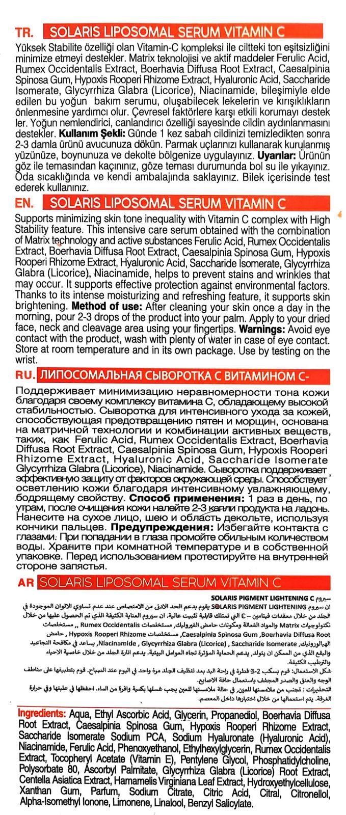 Solaris Pigment Lightening C Serum İçerisinde Neler Bulunur