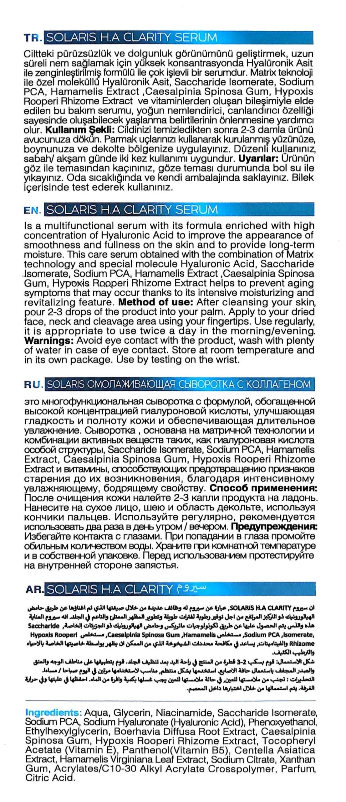 Solaris Hyaluronic Acid Clarity Serum İçerisinde Neler Bulunur