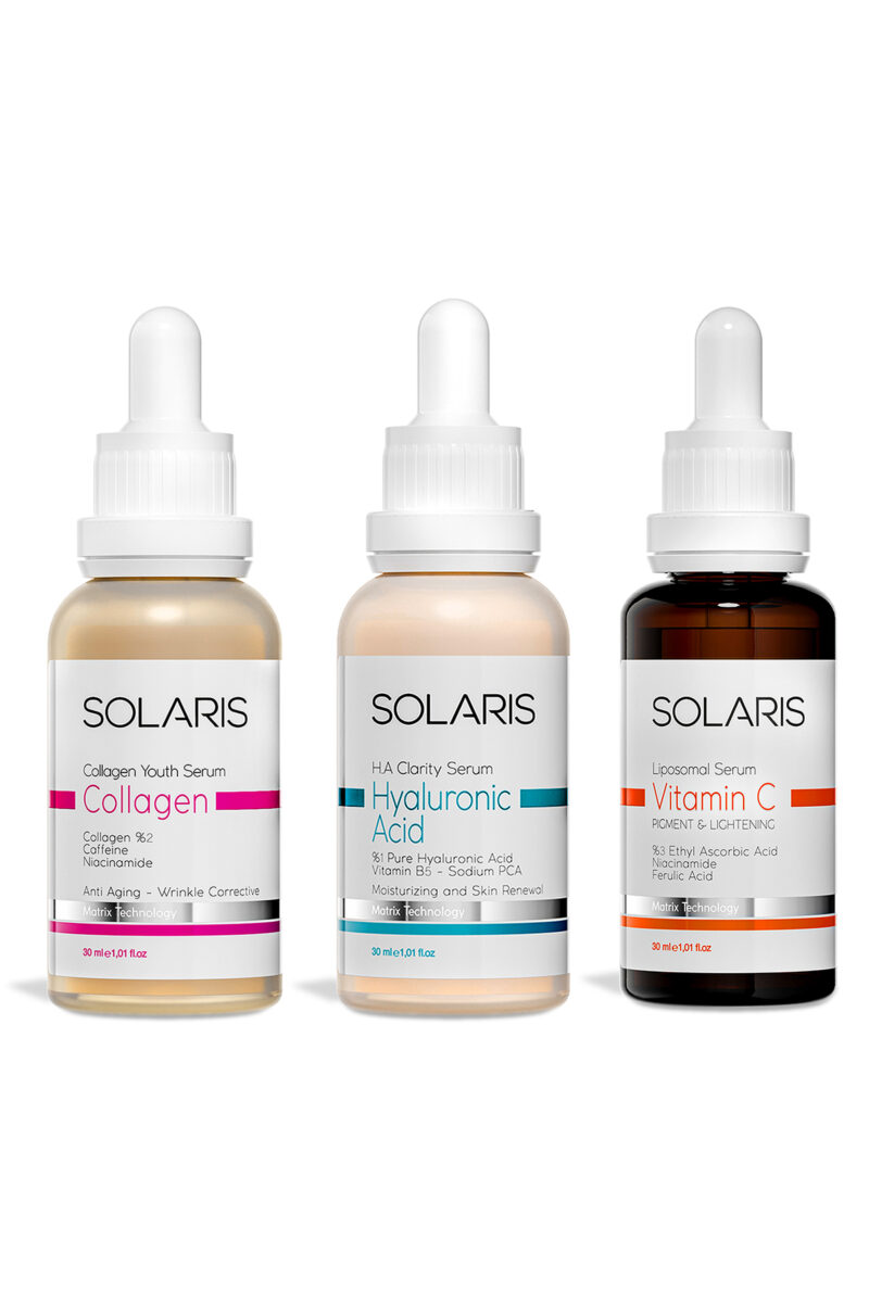 Solaris Kolajen Cilt Bakım Serumu+ Hyaluronic Acid Cilt Bakım Serumu+ C Vitamin Cilt Bakım Serumu