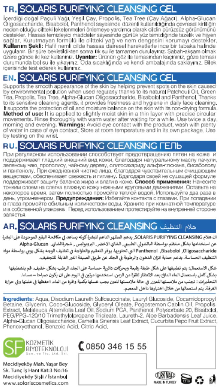 Solaris Purifying Cleansing Gel İçerisinde Neler Bulunur