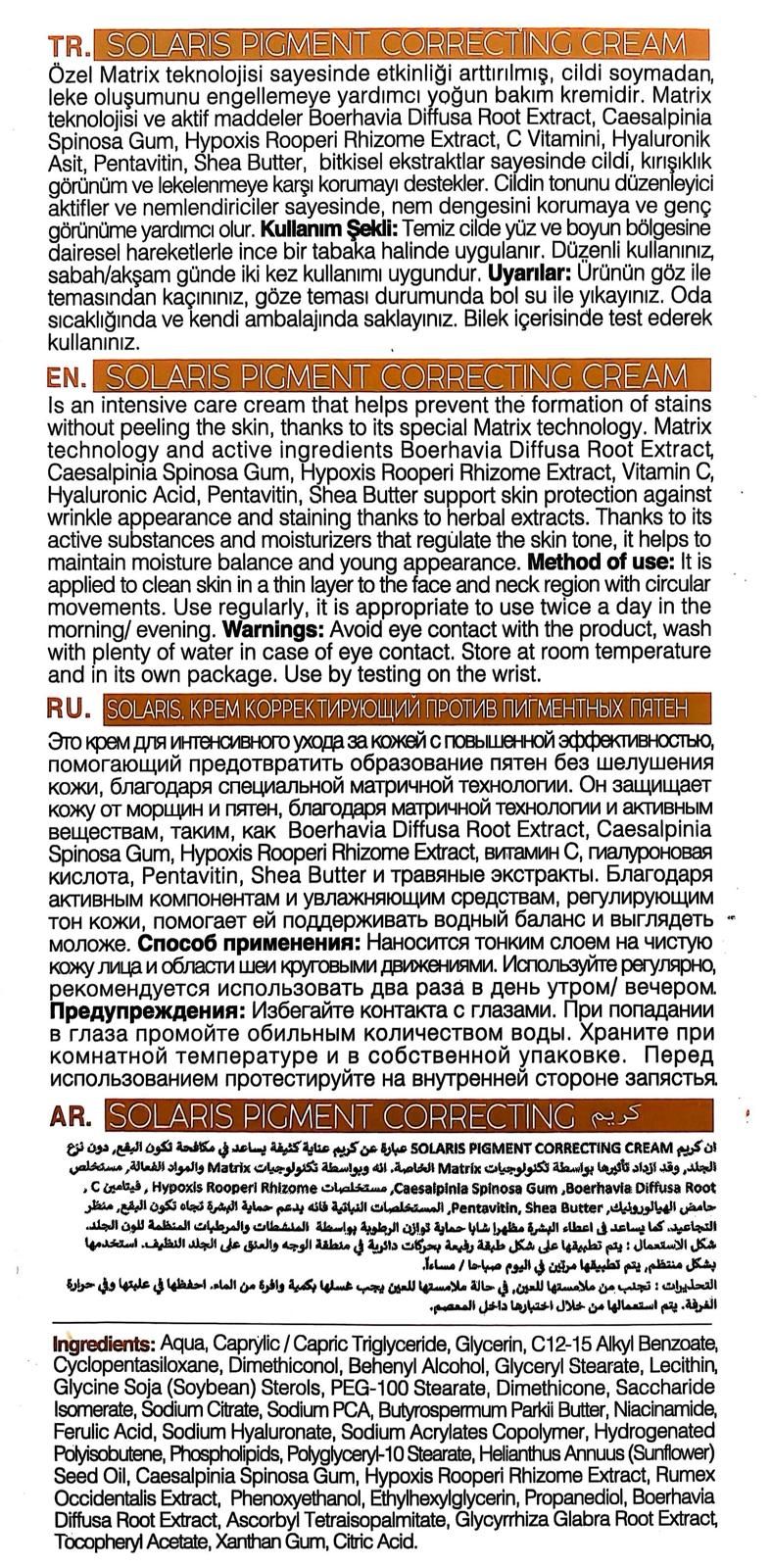 Solaris Pigment Correcting Cream İçerisinde Neler Bulunur