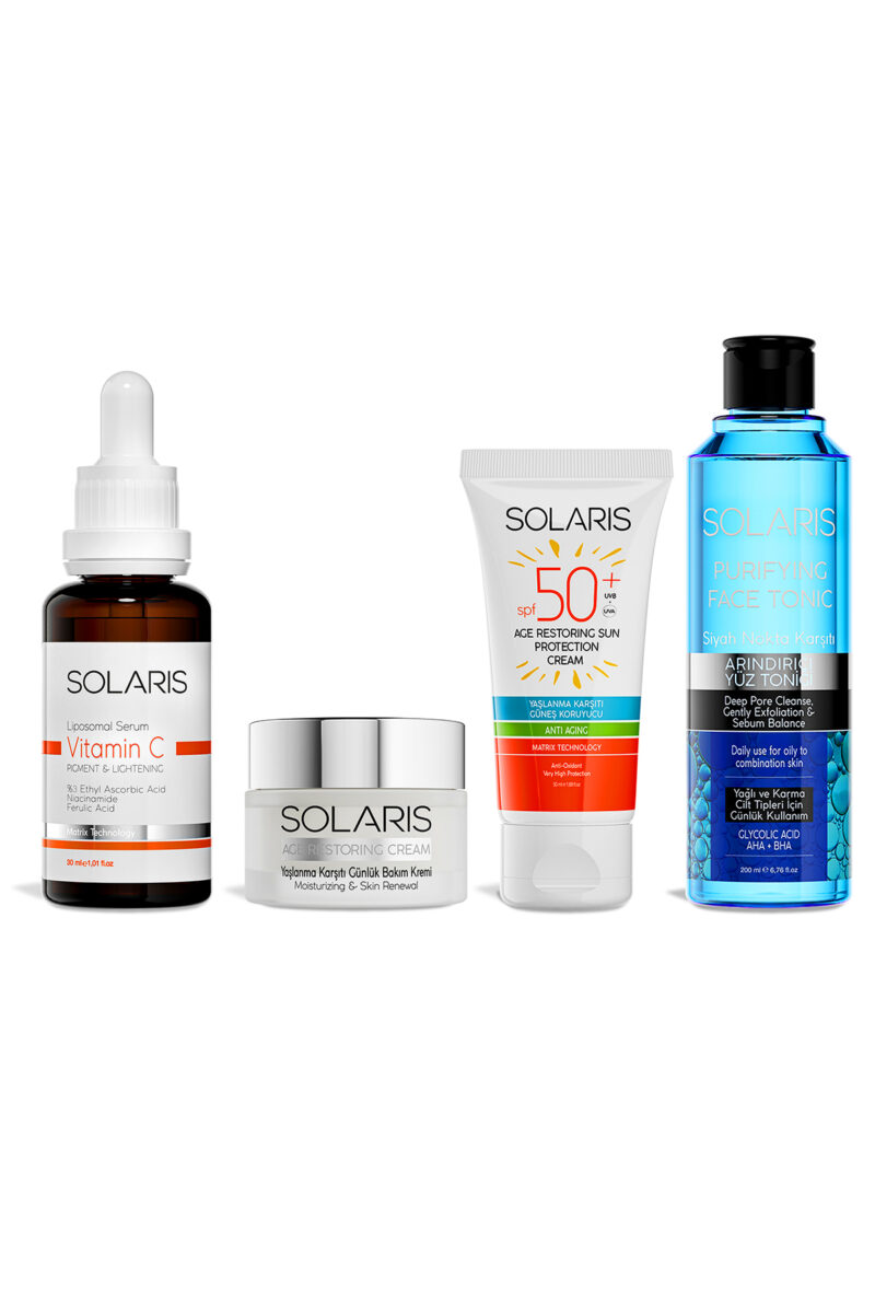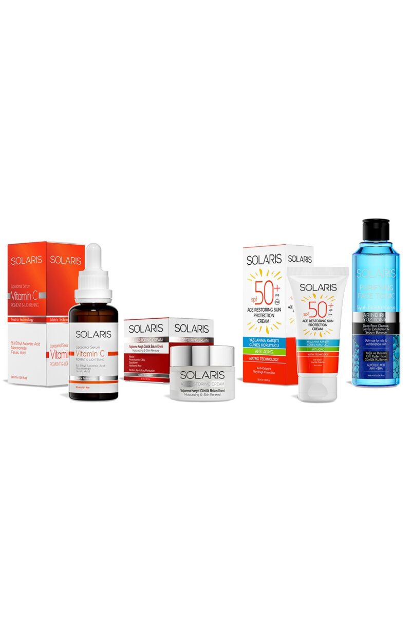 Solaris Avantaj Paketi C Serum-yaşlanma Karşıtı Bakım Kremi-yaşlanma Karşıtı Güneş Kremi- Arındırıcı Tonik
