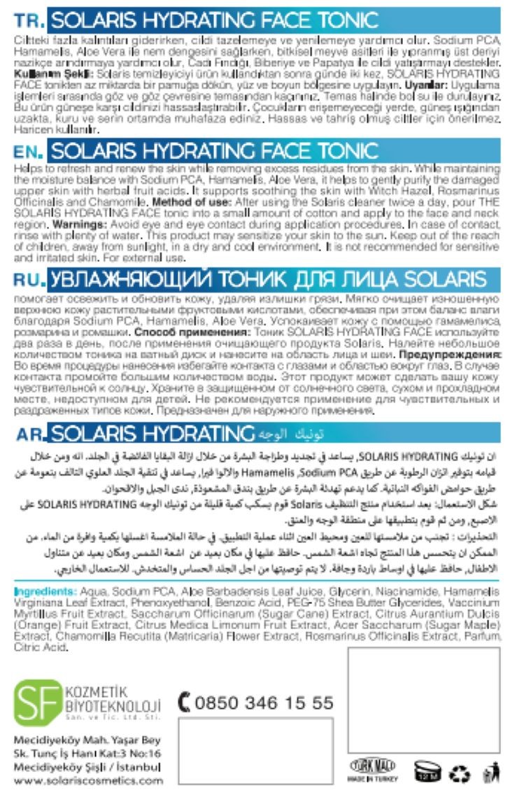 Solaris Hydrating Face Tonic İçerisinde Neler Bulunur